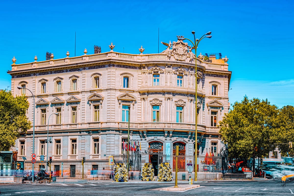 Al otro lado la Plaza de Cibeles se encuentra custodiada por el Palacio de Cibeles, también conocido como palacio de Comunicaciones (antaño sede de la antigua Casa de Correos y hoy sede del Ayuntamiento de Madrid) y por el Banco de España. Todos edificios señoriales que nos hablan de ese pasado palaciego del que disfrutó la ciudad de Madrid en otra época y que conforman ese aspecto pintoresco y señorial tan identitario del centro de la capital de España.